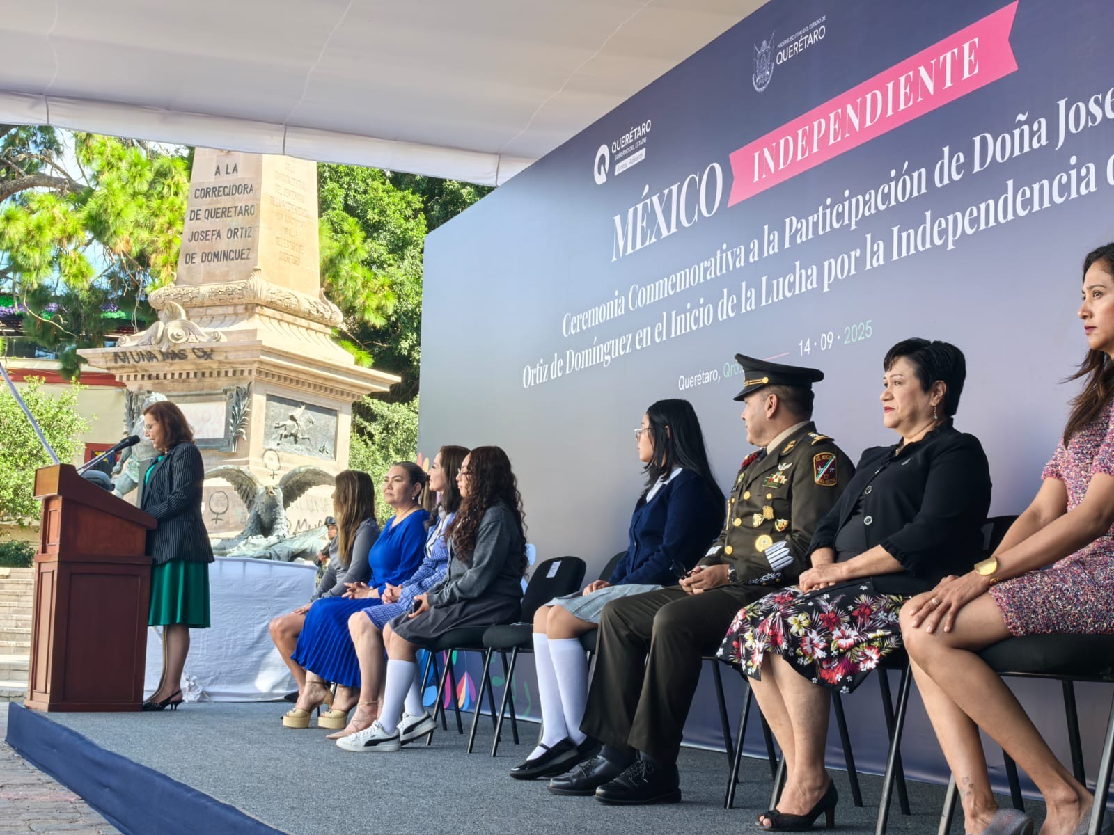 La titular de la Secretaría de Educación del Estado de Querétaro (SEDEQ), Martha Soto, encabezó la ceremonia conmemorativa de la participación de Doña Josefa Ortiz de Domínguez, en el inicio de la lucha por la Independencia de México, evento donde destacó también el papel de las mujeres como protagonistas de causas justas e impulsoras del desarrollo humano a lo largo de la historia de México.