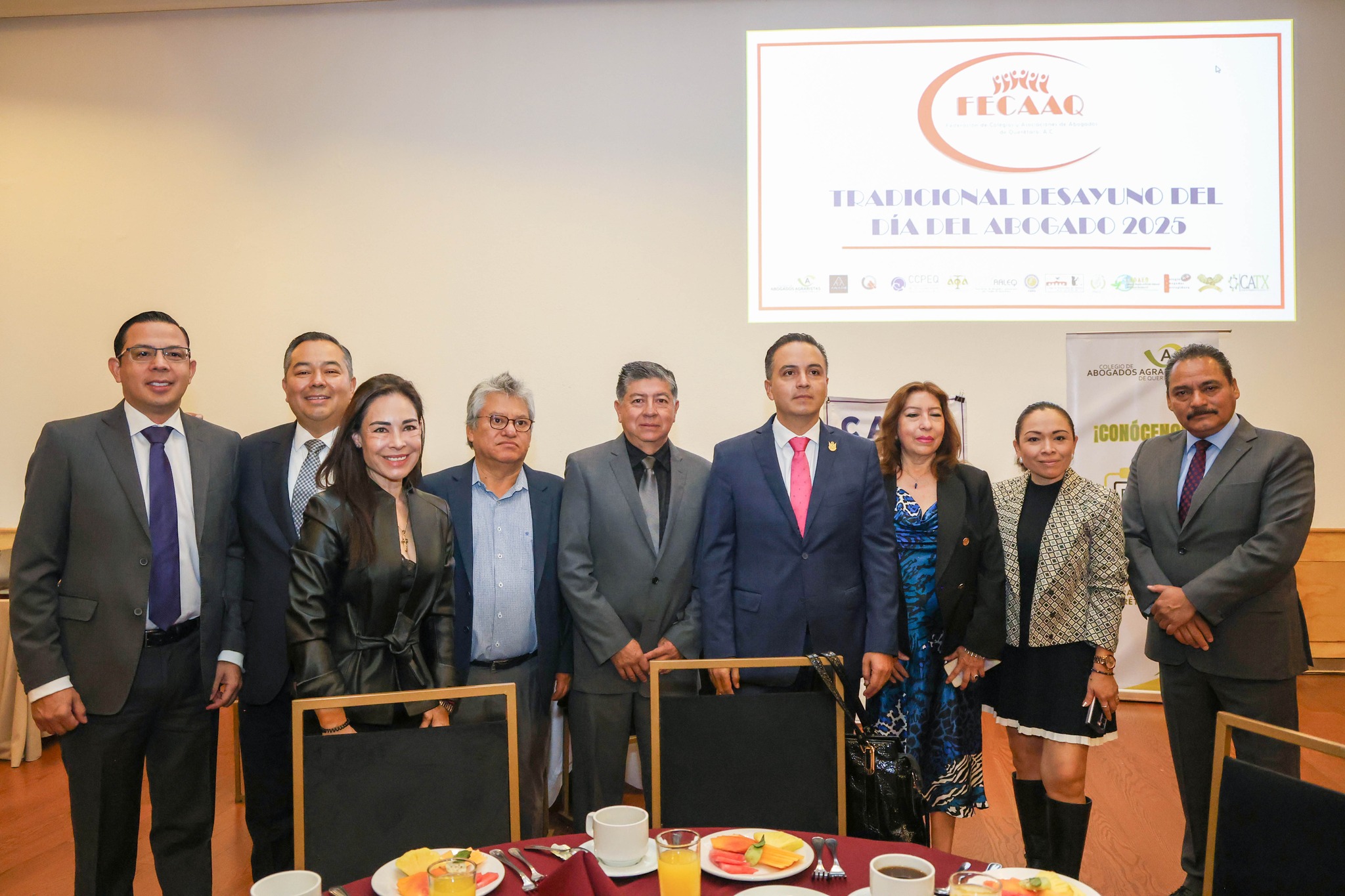 Durante su intervención, el presidente de la FECAAQ, Gerardo Pérez Alvarado, señaló que esta conmemoración no sólo es una fecha que celebra su profesión, sino que también los invita a reflexionar sobre el valor de la justicia, del compromiso ético y el papel social que desempeñan como defensores del Derecho.