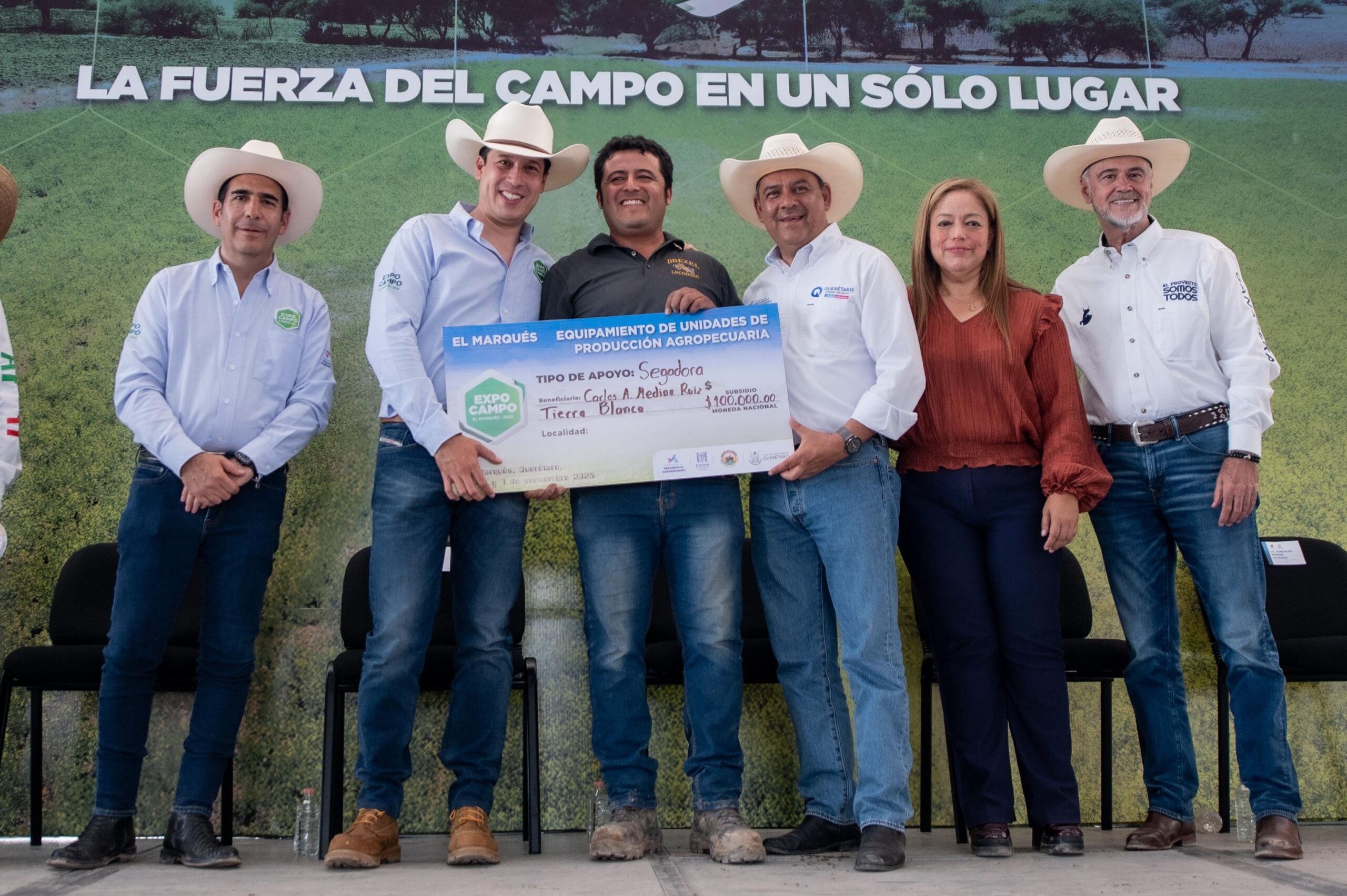 En ese sentido, el edil Rodrigo Monsalvo Castelán destacó: “Bienvenidos a esta Expo Campo El Marqués 2025, un espacio muy estratégico donde fortaleceremos a todos y cada uno de los productores del campo marquesino, impulsando su actividad agropecuaria. Muestra de ello son estos cheques que les estamos entregando, los cuales forman parte de una bolsa bipartita de 4 millones de pesos, conformada por recursos estatales y municipales, para subsidiar la compra de su maquinaria, equipos e instrumentos, sumando su aportación como productores. Los invito a que aprovechen esta gran ventana para conectarse con otros, para mostrar la calidad de su trabajo, del ganado y de los mejores productos que tenemos en toda la región”.