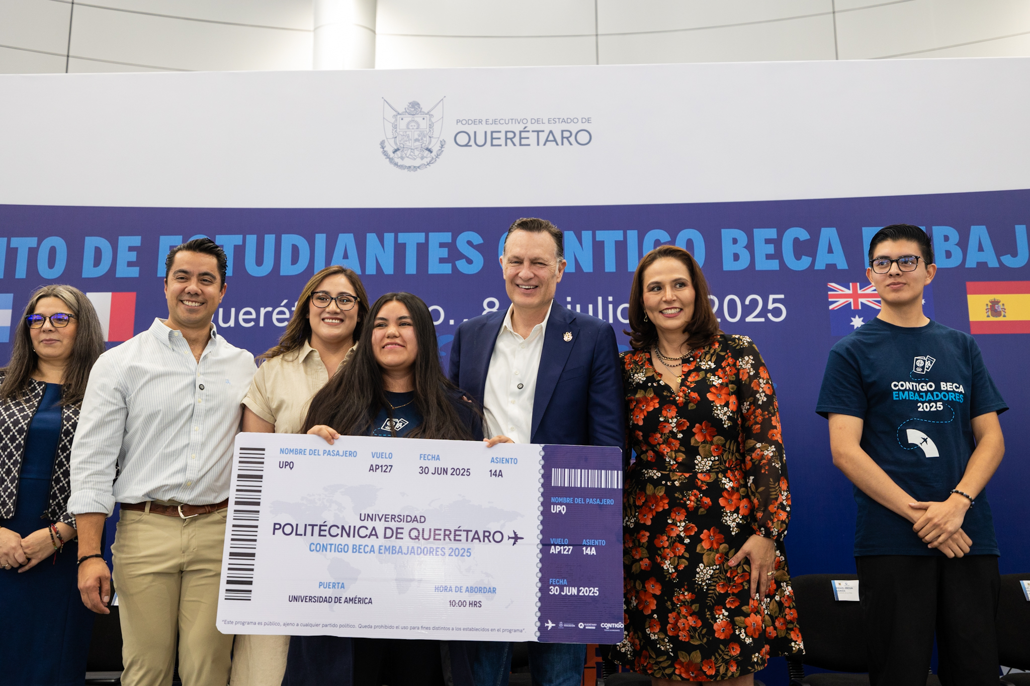 En la ceremonia que representó la cuarta edición del programa educativo que ofrece oportunidades de movilidad internacional a estudiantes, docentes e investigadores matriculados en cualquiera de las seis Universidades Politécnicas y Tecnológicas de Querétaro, el mandatario estatal, junto a las autoridades, entregó los pases de abordar a las y los alumnos que reforzarán sus conocimientos en las áreas de ciencia, tecnología, ingeniería, sustentabilidad, liderazgo, innovación, salud y enseñanza de lenguas extranjeras.