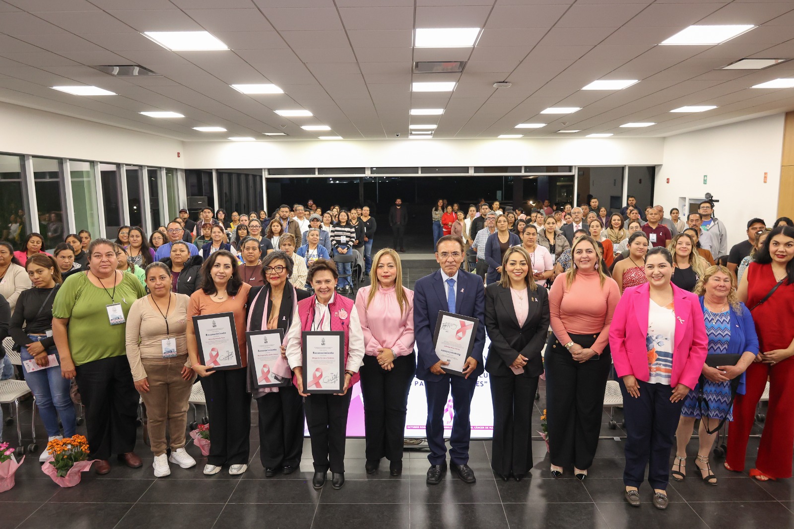 Al término del evento, los presentes plasmaron sus huellas en el mural simbólico “Por nosotras” y presenciaron el encendido en color rosa del edificio del Poder Legislativo del Estado de Querétaro, en conmemoración del 19 de octubre, Día Mundial contra el Cáncer de Mama, fecha que invita a todas y todos a reflexionar, a sensibilizarse y a actuar.
