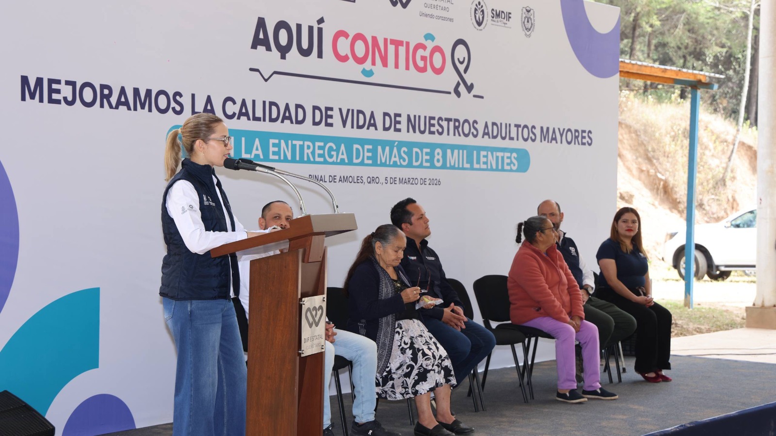 A fin de mejorar la salud visual de los grupos prioritarios, la presidenta del Patronato del Sistema Estatal DIF, Car Herrera de Kuri, encabezó la entrega de lentes que se desarrolló en la cancha de usos múltiples de la comunidad de Llano de Huaxquilico del municipio de Pinal de Amoles.