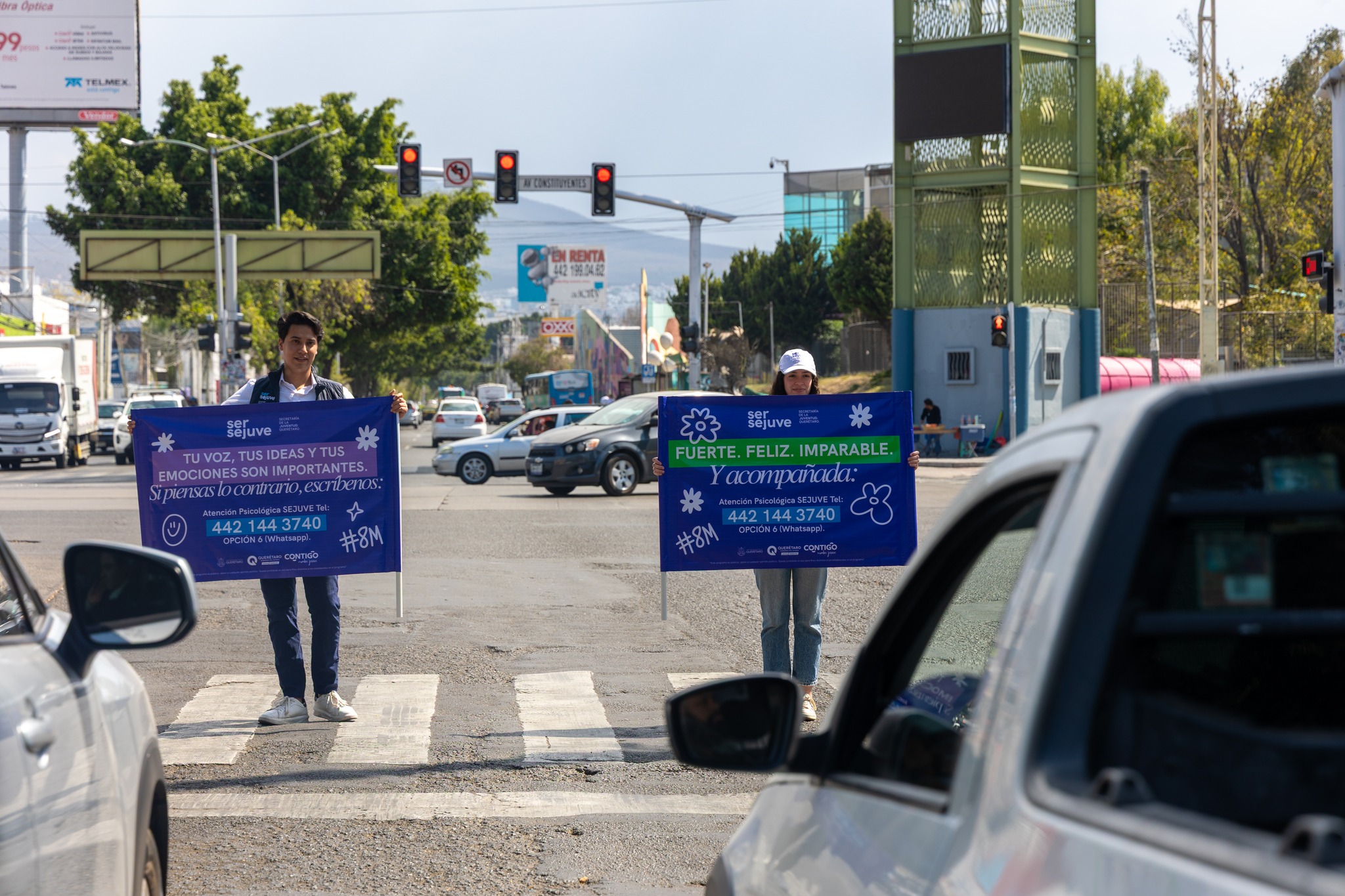 En el marco del Mes de la Mujer, la Secretaría de la Juventud (SEJUVE) puso en marcha una campaña de concientización y sensibilización en las principales vialidades de la capital, con el objetivo de promover el cuidado de la salud mental entre las mujeres y fomentar entornos más empáticos y solidarios.