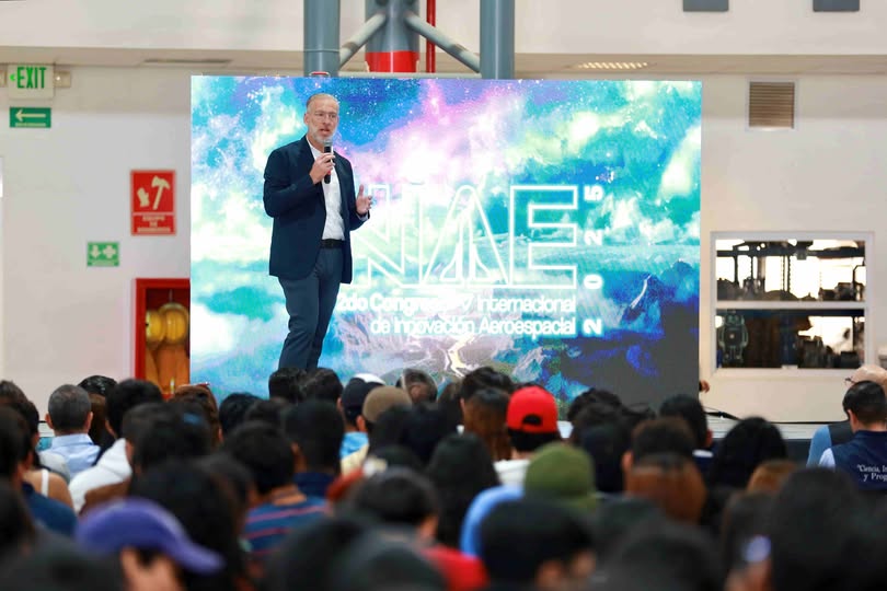Durante su mensaje, señaló que el INAE es punto de encuentro para investigadores, emprendedores, estudiantes y líderes de la industria y del sector aeroespacial, a fin de explorar las fronteras de la tecnología, compartir ideas y colaborar en la creación de soluciones que transformen el futuro del espacio y la aeronáutica.