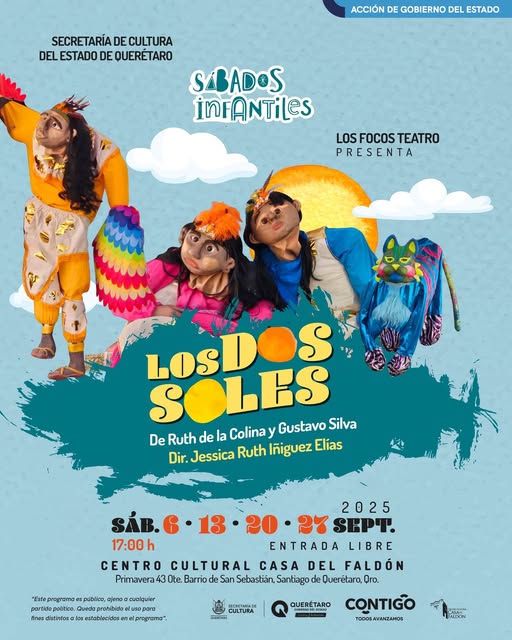 Con entrada libre, las funciones de “Los dos soles” se ofrecerán a las 17:00 horas de los cuatro sábados de septiembre; el Centro Cultural Casa del Faldón se ubica en la calle Primavera, número 43, Barrio de San Sebastián, en la capital de Querétaro.