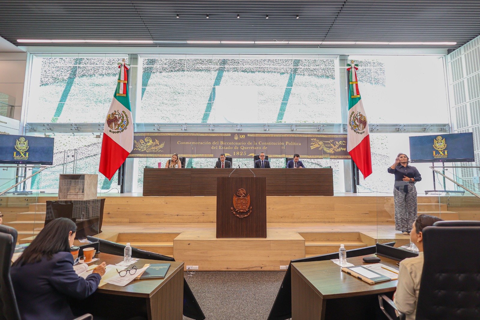 En Sesión Solemne, la LXI Legislatura del Estado de Querétaro conmemoró el Bicentenario de la Constitución local de 1825, acto encabezado por el presidente de la Mesa Directiva, diputado Gerardo Ángeles Herrera, quien resaltó que no solo es un homenaje a un documento jurídico, sino también a un proceso: “El de pasar de la idea a la realidad, del texto a la acción, de los principios a las instituciones, ya que en ese momento se colocaron las bases que han sostenido la vida política, social y económica del Estado durante dos siglos”.