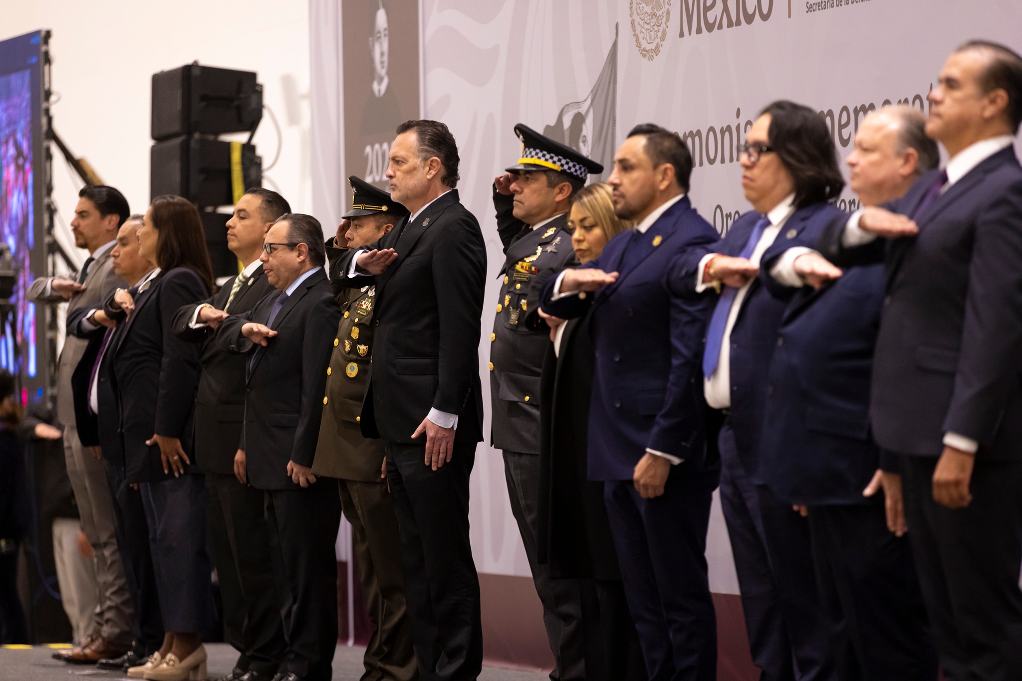 Desde el Querétaro Centro de Congresos, donde se rindieron honores al Lábaro Patrio, el mandatario estatal, en compañía del Gral. de Bgda. de E. M., José Guillermo Lira Hernández, comandante de la XVII Zona Militar y el Gral. de Bgda. de E.M., Alfredo Salgado Vargas, coordinador estatal de la Guardia Nacional, honró el legado de quienes forjaron la nación y a uno de los símbolos considerado emblema de unidad, respeto y soberanía.