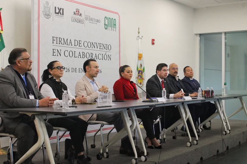 La presidenta de la Mesa Directiva de la LXI Legislatura del Estado de Querétaro, Ginna Guzmán, encabezó la Firma del Convenio de Colaboración con la Universidad de Londres Campus Querétaro, con el objetivo de fortalecer la formación académica y el desarrollo profesional de jóvenes y del personal del Poder Legislativo.