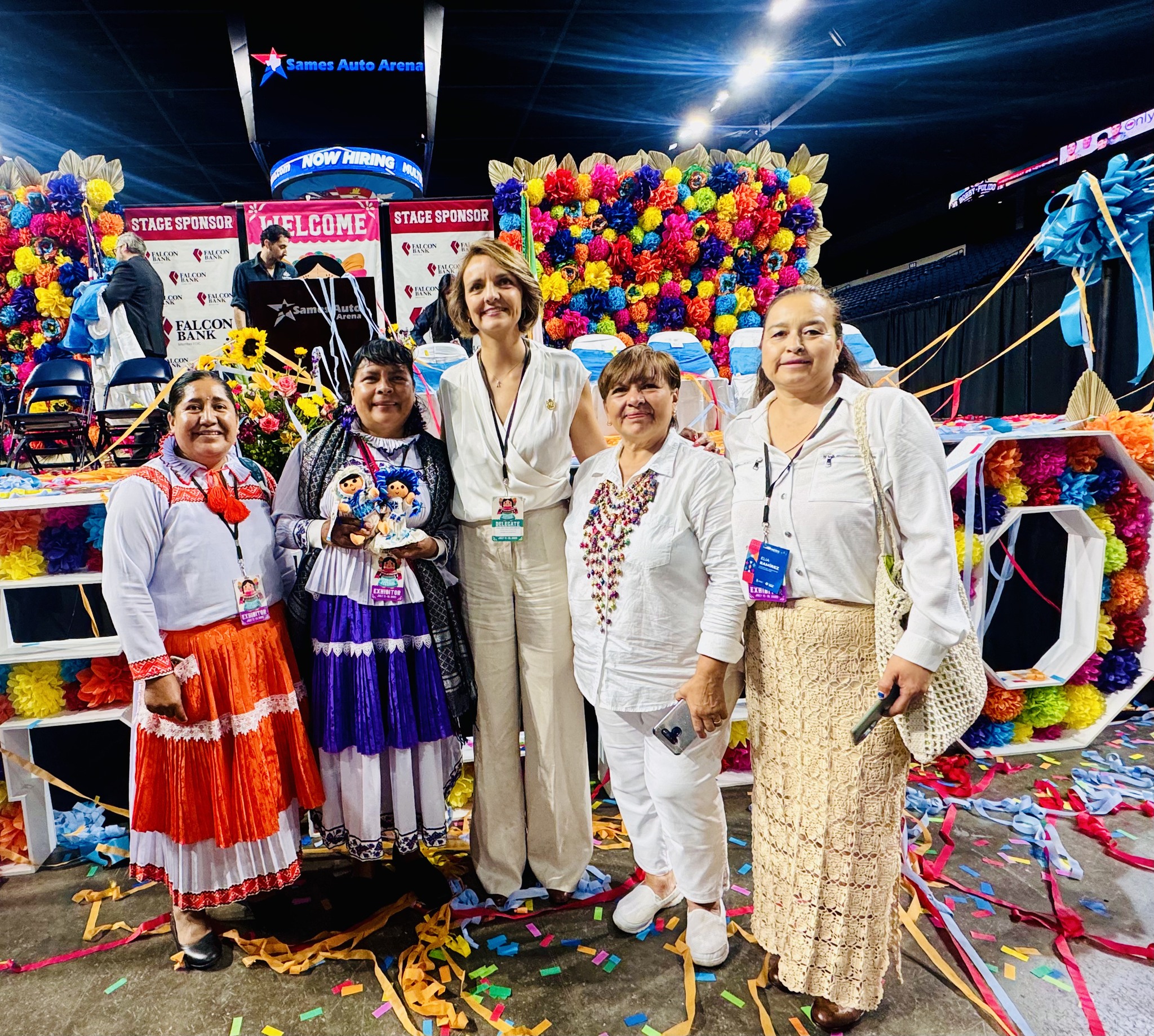 La funcionaria aseguró que este tipo de manifestaciones permiten avanzar hacia una verdadera cultura de paz, toda vez que cuando una niña aprende a bordar una muñeca Lele, cuando un joven escucha un huapango que habla de su tierra, o cuando una comunidad se reúne alrededor del mole de xoconostle, lo que se siembra es memoria, orgullo y esperanza.