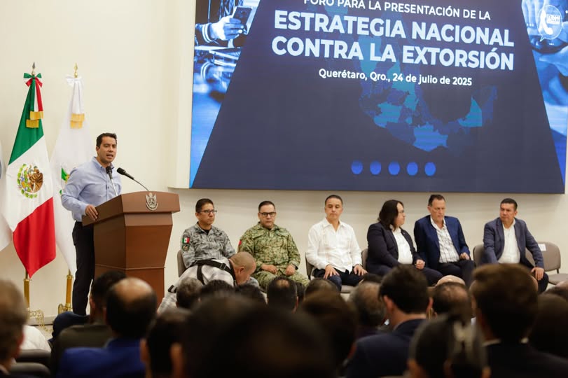 • Lo anterior lo dio a conocer al acompañar al gobernador del estado, Mauricio Kuri González, y al Fiscal General del Estado, Víctor Antonio de Jesús Hernández, en el Foro para la Presentación de la Estrategia Nacional contra la Extorsión, que tiene como objetivo fortalecer las acciones para evitar que la ciudadanía sea víctima de este delito.