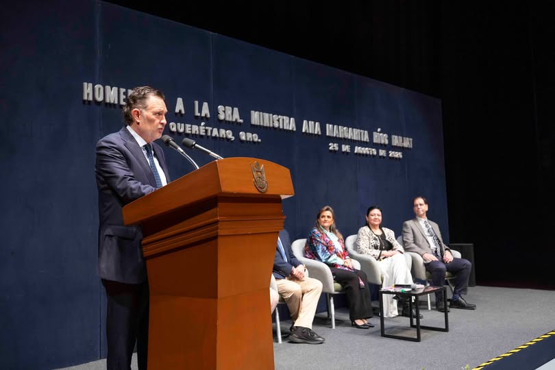 Desde el Teatro Experimental del Querétaro Centro de Congresos (QCC), el mandatario estatal reconoció la amplia capacidad jurídica de la Ministra, su sólida carrera profesional y el valor que otorga al prestigio en el ejercicio de la justicia.