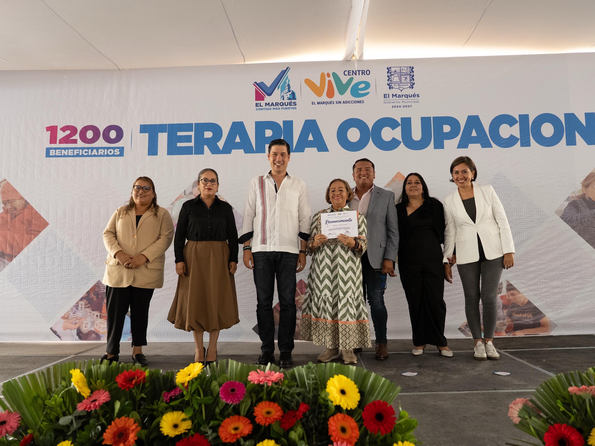 Dando continuidad a la estrategia de fortalecer el bienestar emocional de la ciudadanía y fomentar el autoempleo, el presidente municipal de El Marqués, Rodrigo Monsalvo Castelán, encabezó la clausura de la Segunda Edición de los Talleres de Terapia Ocupacional, organizados por el Instituto Municipal para la Prevención y Atención de Conductas de Riesgo, Centro Vive.