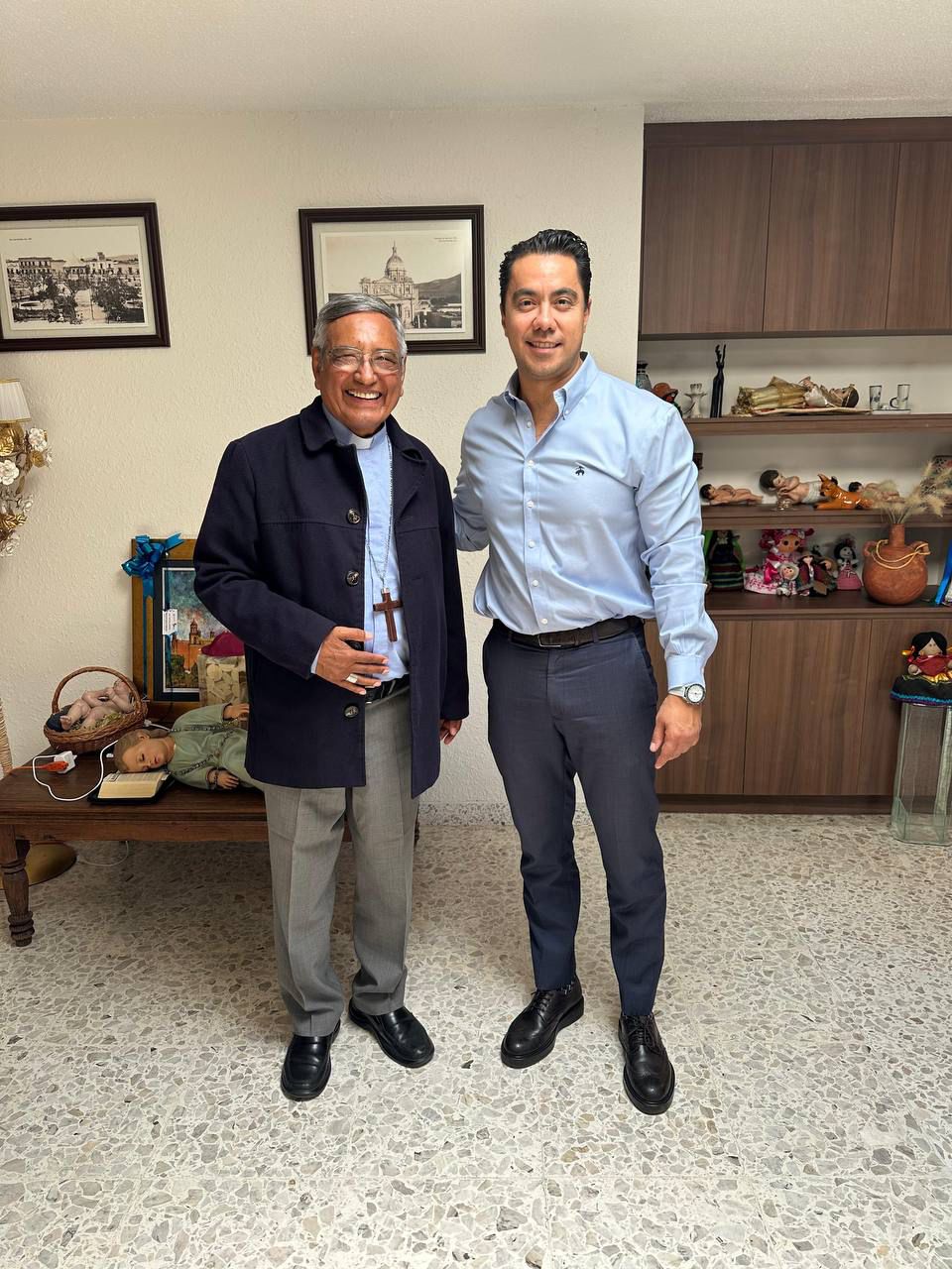 El presidente municipal de Querétaro, Felifer Macías, se reunió con el Obispo de Querétaro, Fidencio López Plaza, con quien tuvo oportunidad de dialogar acerca de los proyectos que realiza la Diócesis en la ciudad, así como del trabajo coordinado que mantienen a favor del bienestar de las familias queretanas.