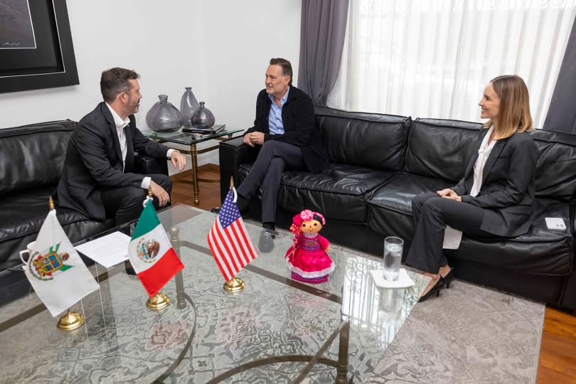 El titular del Poder Ejecutivo estatal, Mauricio Kuri González, se reunió en la Casa de la Representación en la Ciudad de México con el presidente de la American Society of México, Larry Rubin, con el propósito de fortalecer las relaciones culturales y promover proyectos bilaterales que impulsen la colaboración entre Querétaro y la comunidad estadounidense, en beneficio del desarrollo económico y social de la población queretana.