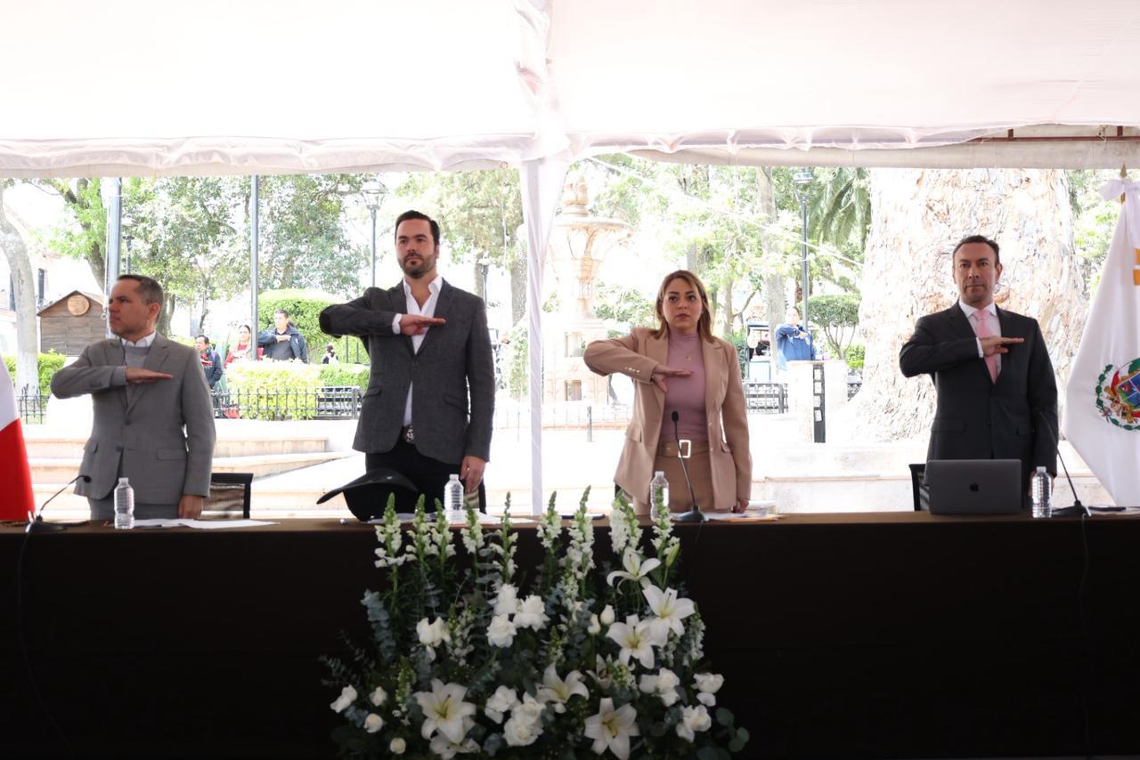 Teniendo como marco la plaza cívica de Huimilpan, esta sesión contó con la presencia de su alcalde, Jairo Morales Martínez, y de la presidenta del Patronato del DIF municipal, Ana Karen de León Servín; así como regidoras, regidores, secretarias, secretarios y titulares de las áreas municipales; además de alumnos, directivos y docentes de la Preparatoria de la Universidad Autónoma de Querétaro (UAQ), plantel Huimilpan, de la Secundaria Técnica número 8 y del Cecyteq plantel 82.